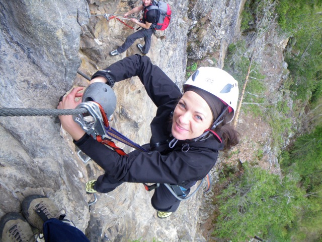 Du kletterst am fixen Drahtseil hinauf, gesichert durch dein Klettersteigset. Wenn du noch weitere Hilfe benötigst hat dein Bergführer ein zusätzliches Seil dabei.